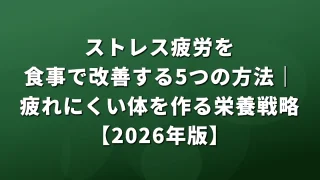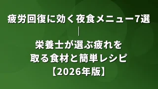 慢性疲労に効く食べ物7選|栄養士が選ぶ疲労回復食材と1週間レシピ【2026年版】では、これらの栄養素を効率よく摂取できるメニューを詳しく紹介しています。